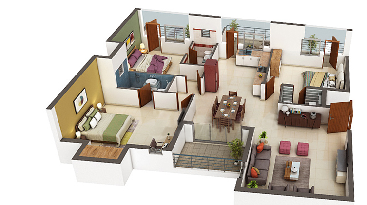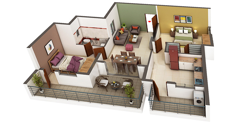 Our Two bed apartments are spacious and built with proper ventilation allowing more fresh air and natural light in every corner of the flat. We provide our customers a wide range of sizes to choose depending on their needs and budget, starting from 1179 sqft to 1303 sqft in size. Our Experts and Experienced Architect ensures all the flats layout are designed as per Vastu Shastra that would suit your requirement.