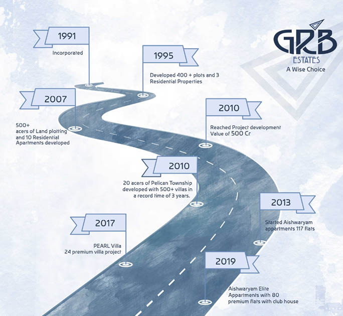 The Integrity of their endeavor proved off. Sri Vedhaa Creations gain a reputation for being trustworthy and reliable. Thus became a company that delivers what they promise. By the year 2003 they had already done 500 +acres of land plotting and had build residential apartment at 10 different sites that would include 600+ flats. Further to the never ending growth in 2014 they add a feat in luxury housing with Villas and Row Houses. Giving them a reason to diversify their business and develop properties like hotels and commercial places. In 2017 GRB Estates was established to manage this diversified business under one roof. GRB Estates aim to thrive in different endeavors by keeping their Integrity in what they believe for years to come.